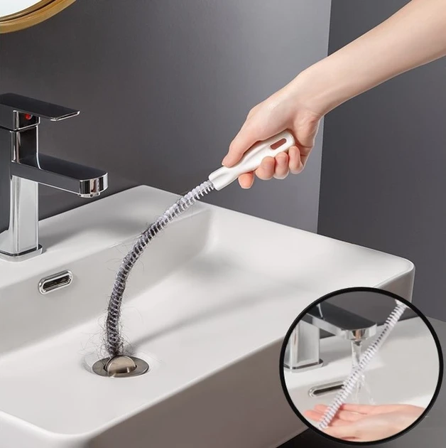 - Ефективне чищення: Завдяки спеціальним щетинкам і гнучкому корпусу, інструмент ефективно видаляє засмічення, жир та інше сміття з труб.